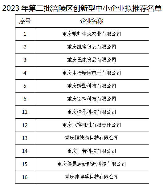 重慶市涪陵區經信委 | 關于2023年第二批創新型中小企業擬推薦認定名單的公示→另附創新型中小企業申報指南