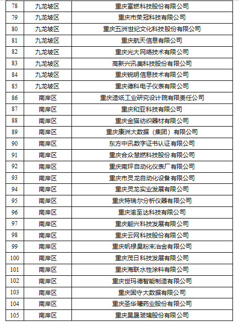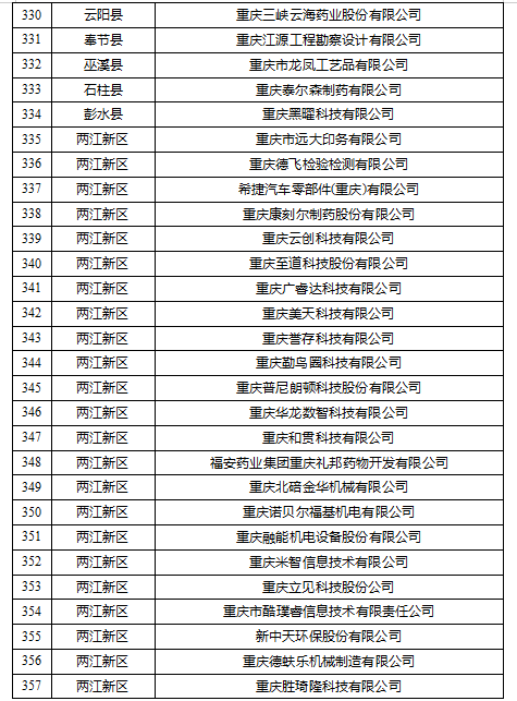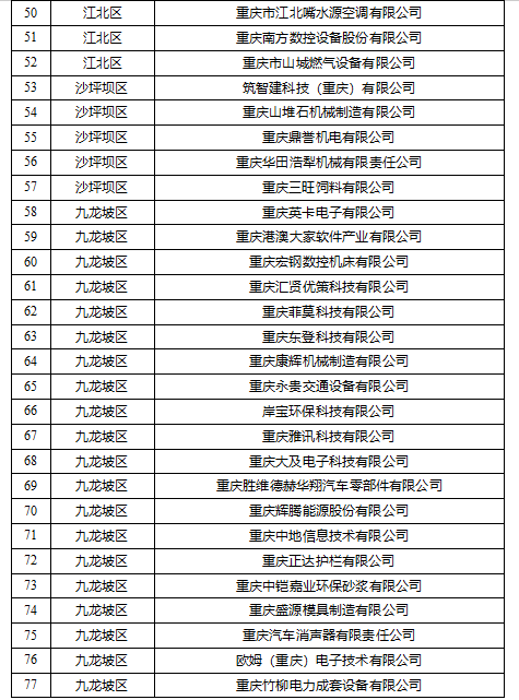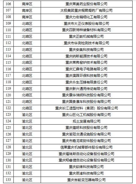 重慶市專精特新中小企業擬復核通過公示名單