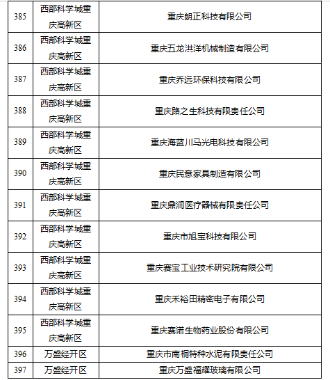 根據《重慶市優質中小企業梯度培育管理實施細則》(渝經信規范〔2023〕5號)、《重慶市經濟和信息化委員會關于開展專精特新中小企業復核工作的通知》(渝經信中小〔2023〕22號),經企業申報、區縣初審、市級評審等程序,擬復核通過397家企業,現將名單予以公示。
