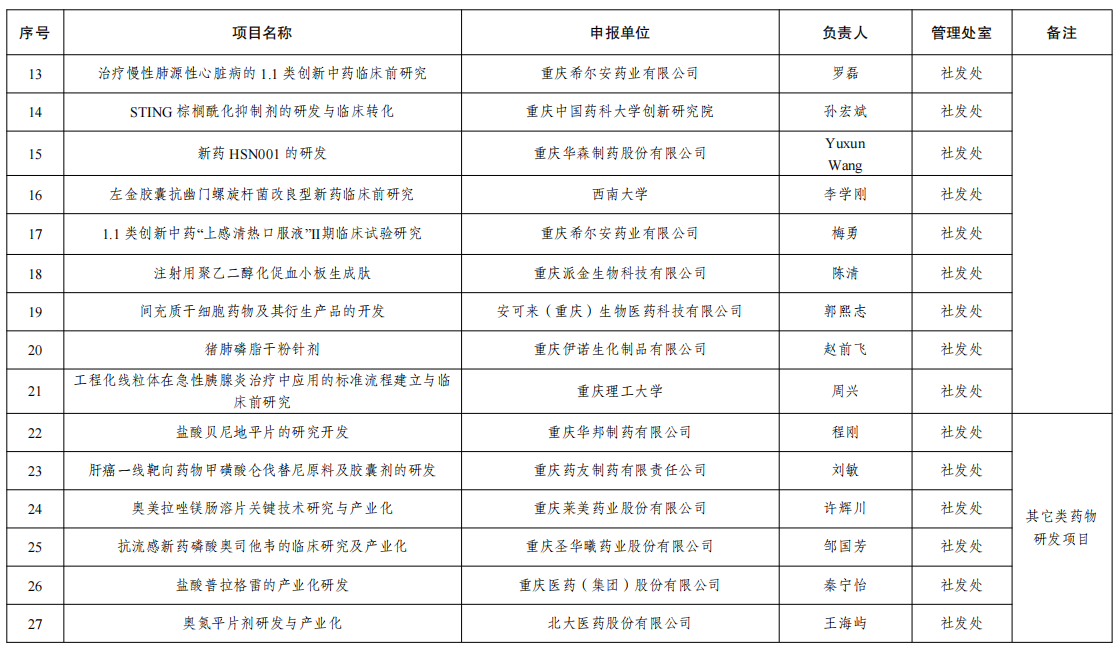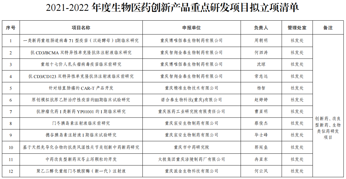 市科技局 | 2021-2022年度生物醫藥重點研發項目擬立項清單公示