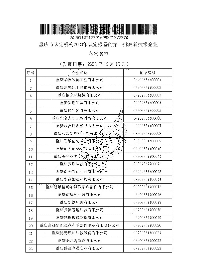 附件下載:重慶市認(rèn)定機(jī)構(gòu)2023年認(rèn)定報(bào)備的第一批高新技術(shù)企業(yè)備案名單.pdf