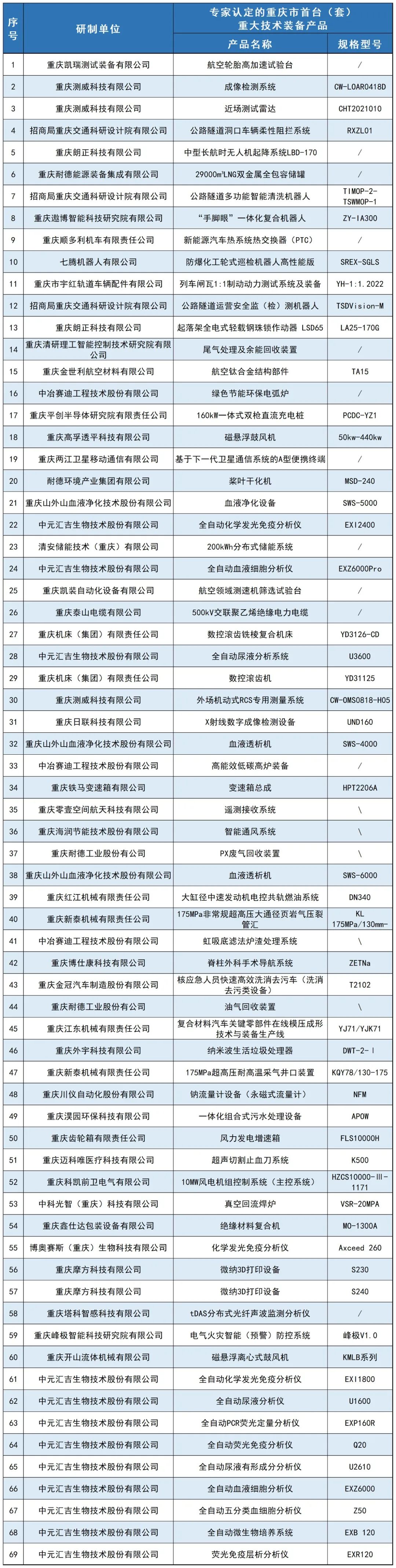 第二批重慶市首臺(tái)(套)重大技術(shù)裝備產(chǎn)品名單出爐!69個(gè)產(chǎn)品入選